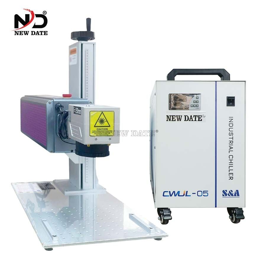 Máy khắc laser UV để bàn của NEW DATE mang phong cách hiện đại, Cho đường khắc mịn màng, thẩm mỹ và sắc nét trên mọi chất liệu. Tổ hợp giữa đầu khắc, bàn nhôm cố định vị trí khắc và máy làm mát nước CWUL-05 cho phép bố trí dễ dàng tại các sản phẩm sản xuất công nghiệp....